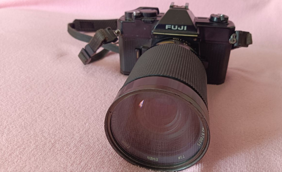 FUJI富士單鏡頭反光膠片相機(jī)STX-2,帶一只2???00毫米長(zhǎng)焦鏡頭和一只50毫米標(biāo)準(zhǔn)鏡頭,各項(xiàng)功能正常,適合正常使用、收藏和展示。
